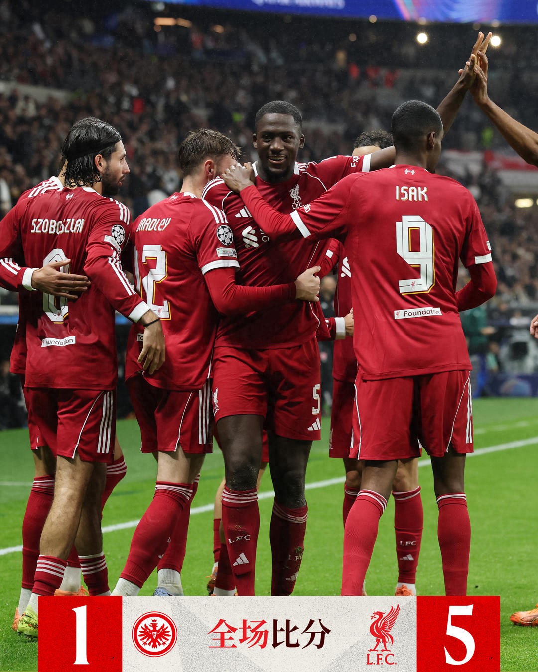 歐冠聯賽:利物浦5-1逆轉法蘭克福 結